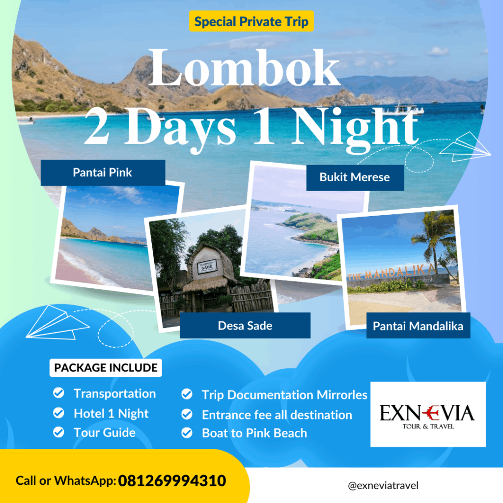 Dengan Paket Wisata Lombok dari Exnevia Travel, kamu tinggal datang—transport, itinerary, dan destinasi terbaik sudah kami urus.